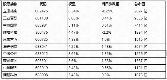 成份股方面,兆易创新涨停,蓝思科技、华勤技术涨超6%,立讯精密涨超5%,歌尔股份、北方华创等个股跟涨。